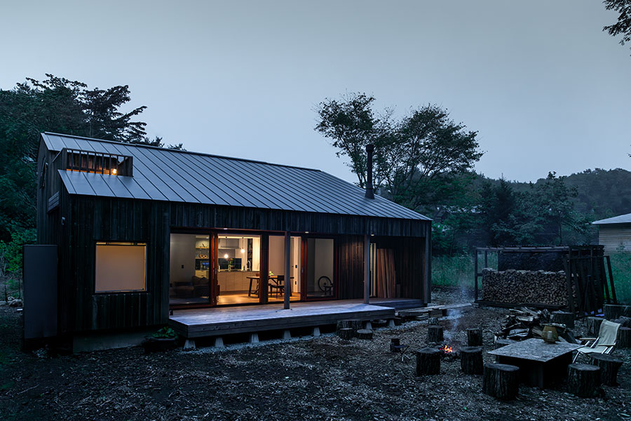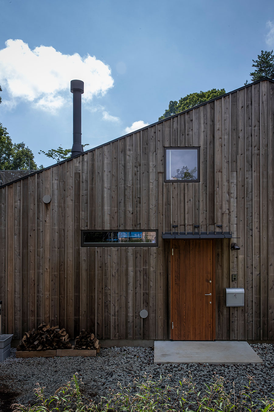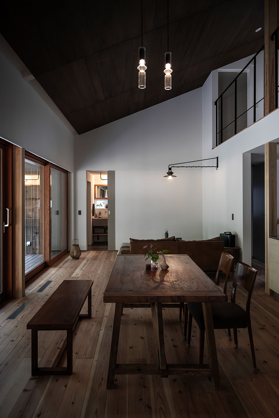 BLADの名の由来である一枚の木の葉は、その表と裏で全く異なる機能と表情を持つ。BLADも同じ様に、家の表で平屋の様相を呈しつつ、その裏で機能的な二階建てとして立ち上がっている。表面の一階と二階に創られたウッドデッキは、四季の移ろいも、訪れる人の明るい笑顔も、みんな暮らしの中に引き込んでいく。内部では「火の間」の静謐さと、ダイニング上部の吹抜の開放感が空間にメリハリを生み、家族一人一人に流れる異なる時間が一階と二階でゆるやかにつながっていく。空間の性質と暮らし方、それぞれが表裏一体となった暮らしがここにある。