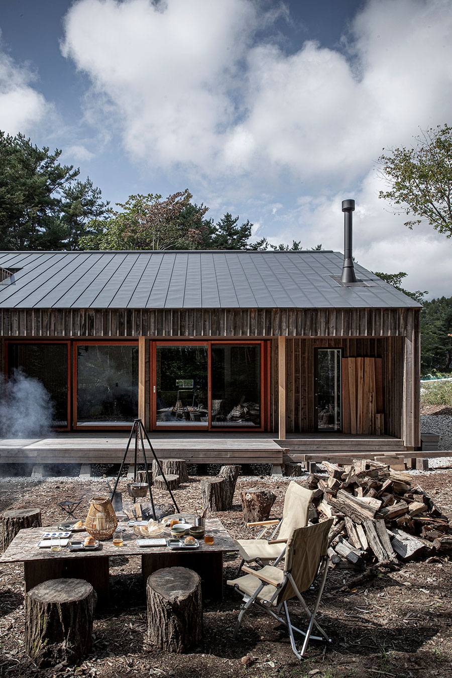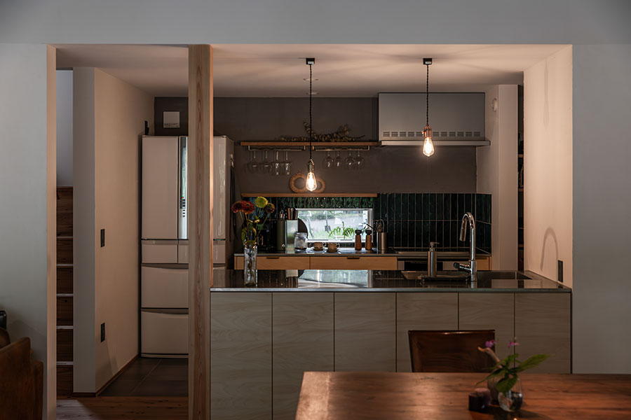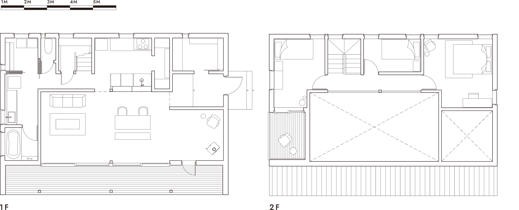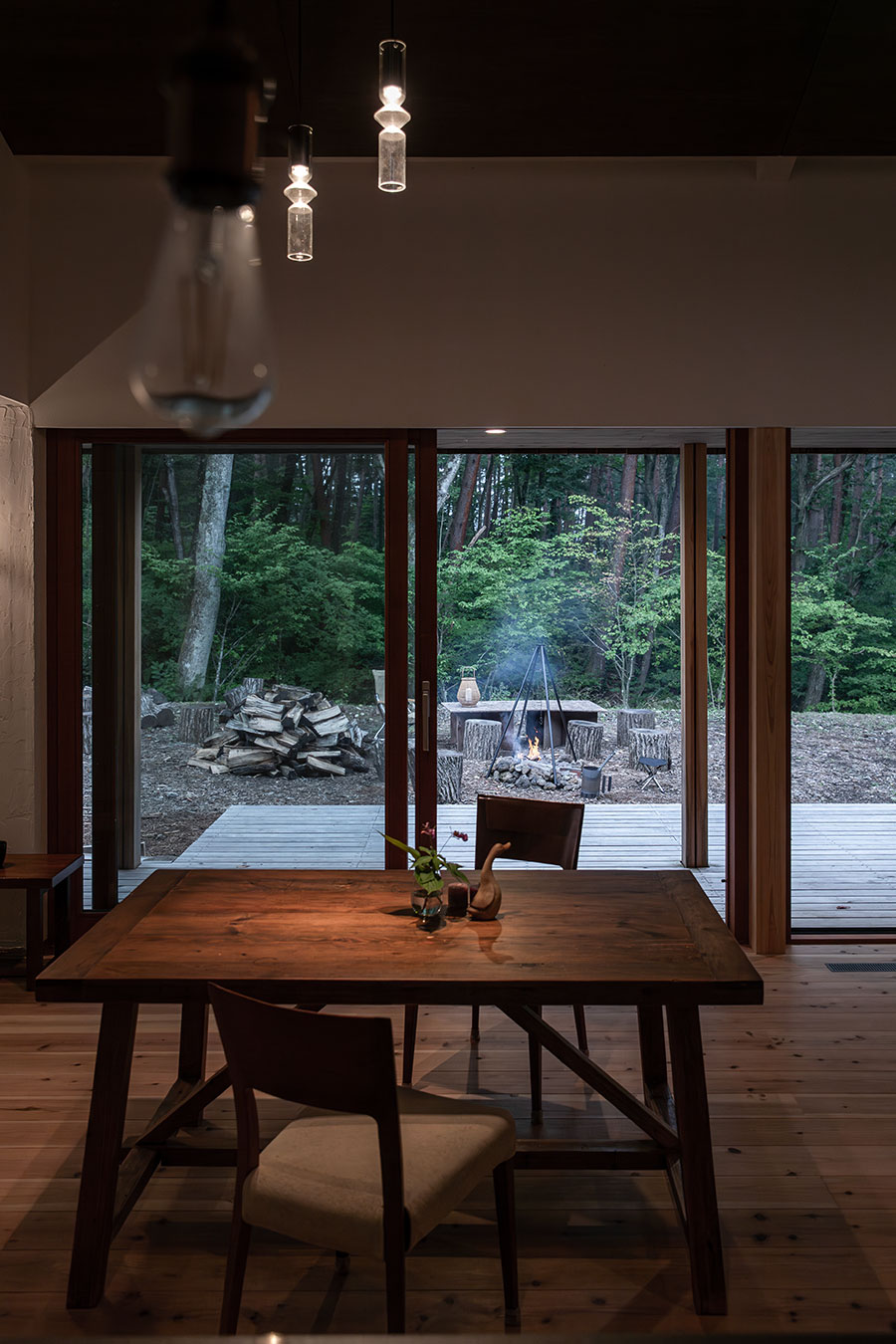 BLADの名の由来である一枚の木の葉は、その表と裏で全く異なる機能と表情を持つ。BLADも同じ様に、家の表で平屋の様相を呈しつつ、その裏で機能的な二階建てとして立ち上がっている。表面の一階と二階に創られたウッドデッキは、四季の移ろいも、訪れる人の明るい笑顔も、みんな暮らしの中に引き込んでいく。内部では「火の間」の静謐さと、ダイニング上部の吹抜の開放感が空間にメリハリを生み、家族一人一人に流れる異なる時間が一階と二階でゆるやかにつながっていく。空間の性質と暮らし方、それぞれが表裏一体となった暮らしがここにある。