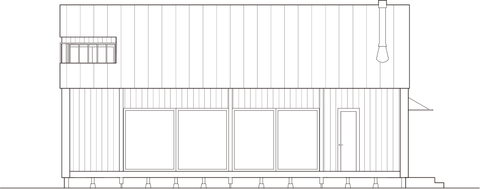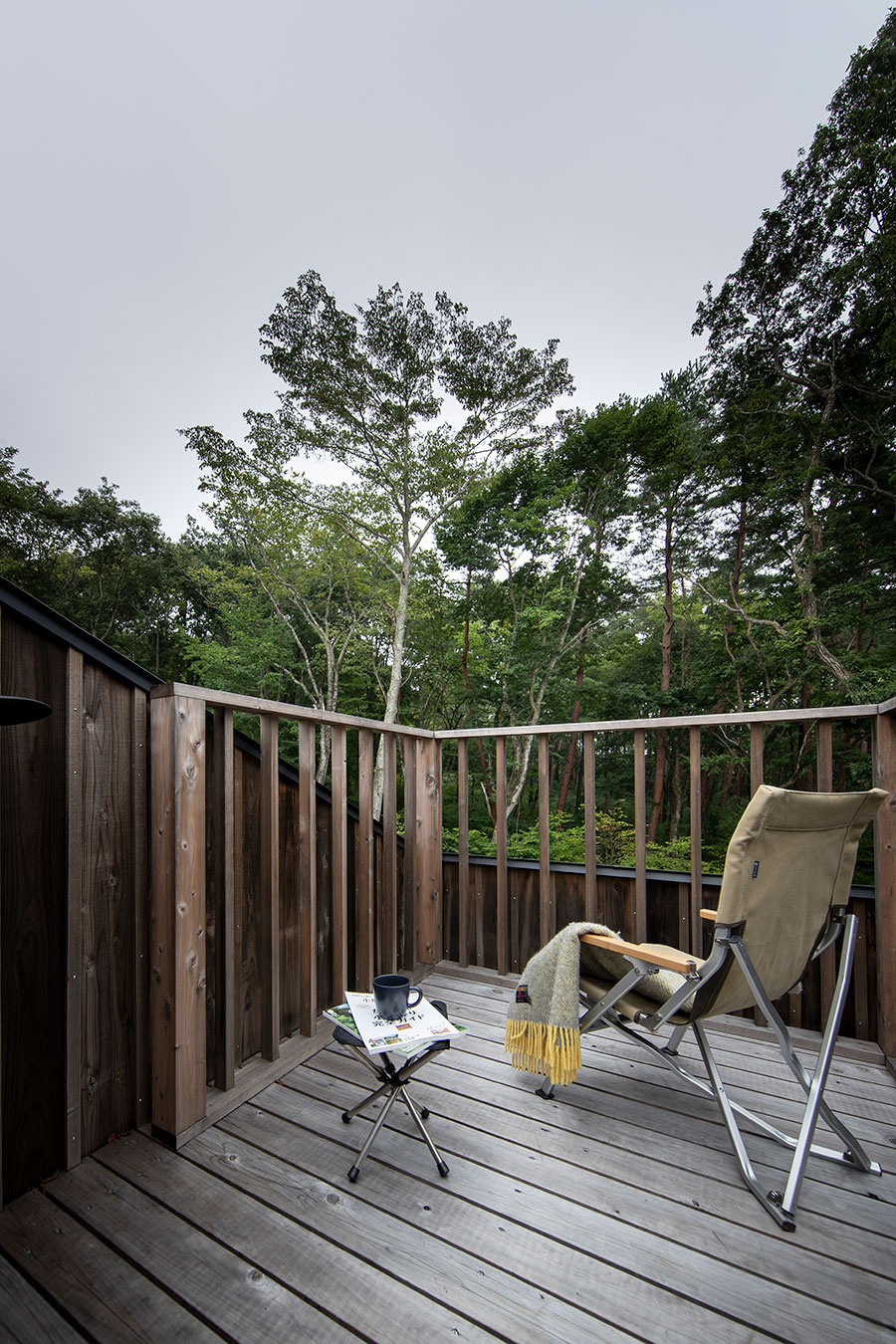 2階建てHUIZENの一つ、BLAD。平屋のような落ち着いたプロポーションを住まいの片側に描きつつ、2階建て部分をもう片方の側に包括する事で、佇まいの美しさと、暮らしの機能性を両立させている。玄関にはゆとりある収納、2階主寝室には立体造形のアクセントになるバルコニーを添えている。モルタル仕上げの「火の間」が日々に静けさと温もりを、奥行きのあるデッキが雄大な自然の心地よさをもたらす。※規格住宅ではありません